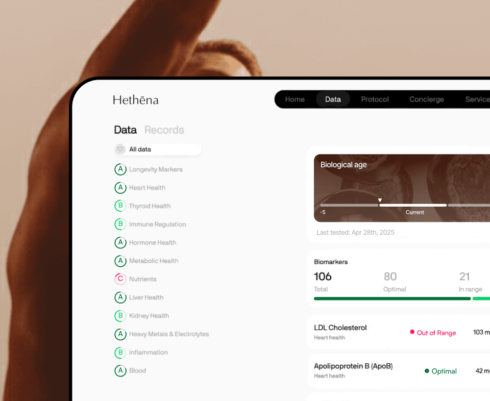 Hethena is for anyone ready to take charge of their health — to move from uncertainty to clarity, and from reaction to prevention. Whether your goal is longevity, energy, or performance, Hethena helps you understand your biology so you can live better, for longer.